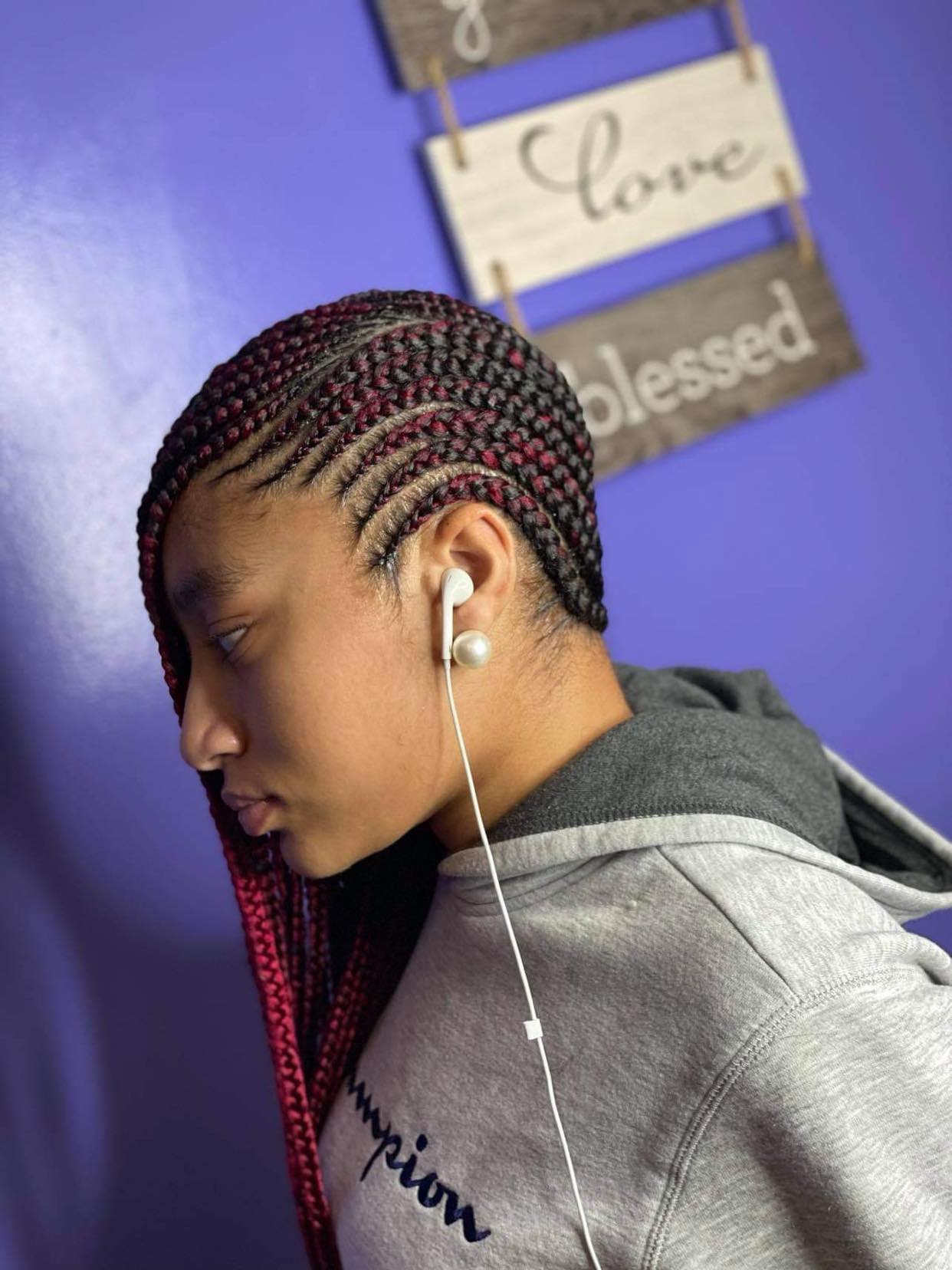 Hair is included in this service. There are plaits underneath this style before the feedins